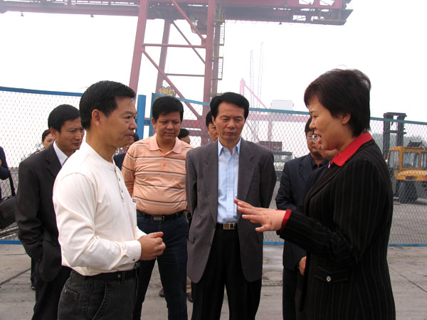 10月25日,岳阳市市长黄兰香率岳阳市相关职能部门和城陵矶港负责人一行在武汉市政府副秘书长杨国成陪同到武汉港杨泗集装箱公司参观学习。武汉港务集团董事长何跃明、副总经理贺德安全程陪同参观,何董事长向来宾介绍了武汉港合资改制和建设发展的基本情况,双方就相关问题进行了广泛的交流探讨。