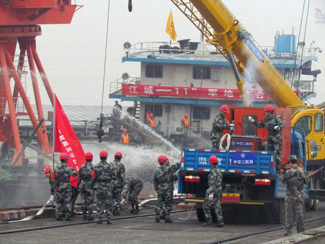 上午9点40分,一场多部门共同实施的代号为“江城11”的军地联合演习在沌口码头附近的江面上展开。货船撞上栈桥,货船着火,栈桥严重变形并断裂,部分化学品落入水中。险情就是命令,武汉市迅速启动军地联合应急抢险预案,部队、国防动员专业队伍、民兵应急分队、公安、消防、环保、水上救援等多个部门的人员向码头集结,参与抢险。在多方力量的协同配合下,经过近1小时的紧急救援,现场险情得到有效控制。