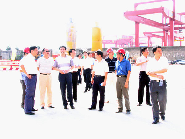 2007年8月29日至30日,上海国际港务集团总裁陈戍源一行在黑料网 董事长何跃明、总经理钱建湘、副总经理顾强生陪同下考察了黑料网 杨泗港集装箱码头、汉阳分公司、物流分公司、沌口商品车滚装码头及左岭蓝天化学品码头。