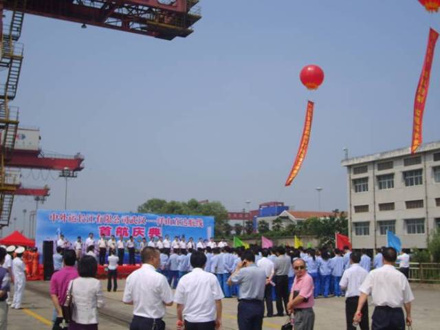2009年6月18日上午,武汉港至洋山港的江海直达航线首航仪式在武港集箱八码头隆重举行。首航仪式现场喜庆祥和,气氛热烈,充分体现了社会各界对武港集箱开通洋山直航的期待和支持,充分说明此次直达航班的开通顺应了地方经济发展对进一步提升港航功能的需求,也预示着在今后能顺利运作并不断发展。