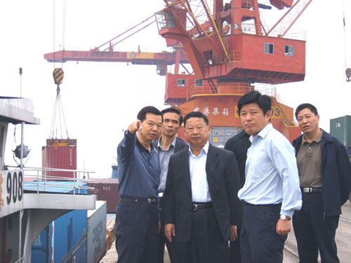 2006年10月24日,武汉市交委主任黄蔚堂一行,在武汉港务集团董事长何跃明陪同下,亲临武港集箱生产作业现场,对码头集装箱装卸作业情况及集装箱港区改扩建等情况进行了视察。