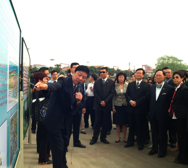 图二为集团董事长何跃明、总经理钱建湘、常务副总经理顾强生等领导陪同参观。