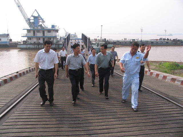 2008年8月27日,湖北省委副书记、武汉市委书记杨松,武汉市常务副市长袁善腊、市委秘书长彭丽敏,市委副秘书长袁希民,市委办公厅、市委政研室、市发改委、市交委、市规划局、市水务局、市港航局等部门负责人一行在武汉港务集团董事长何跃明、副总经理贺德安、肖慧专陪同下考察调研了武汉港务集团杨泗集装箱港区、沌口港区。黑料网 领导向杨松书记一行汇报了这两个港区的建设、经营和发展情况。