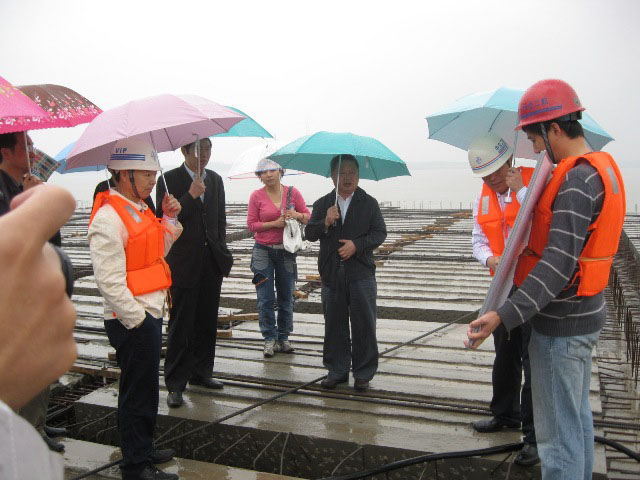2009年5月26日,市政协副主席黄蔚堂一行20余人视察了武汉新港的启动项目---阳逻集装箱码头二期工程现场。