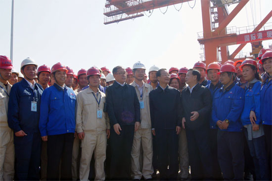 国务院总理温家宝视察武汉新港阳逻集装箱港区
